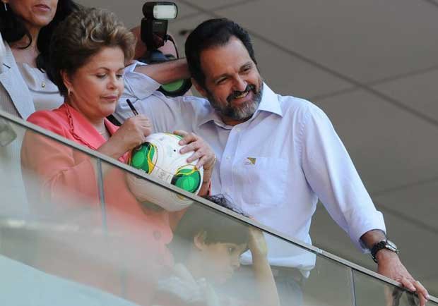 Dilma Rousseff chegou às 10h30 ao Estádio Nacional Mané Garrincha, acompanhada de ministros, parlamentares e dos governadores do Distrito Federal, Agnelo Queiroz, e do Ceará, Cid Gomes. Ao entrar no gramado do Mané Garrincha foi saudada com a música Isto Aqui, O Que É?, de Caetano Velloso.